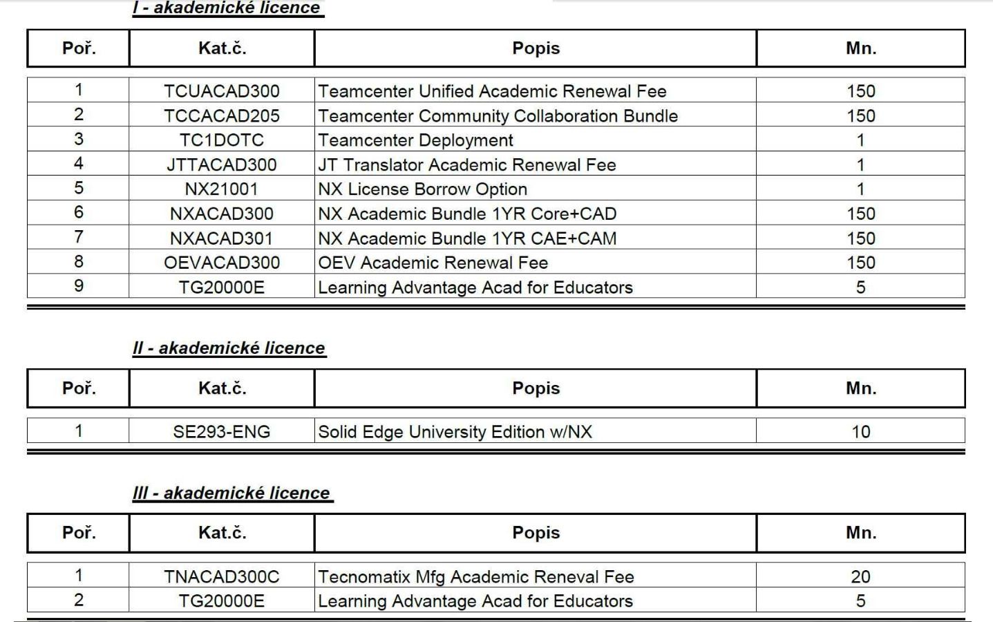 Stručný popis předmětu: Software dle aktuálních potřeb Zadadvatele.